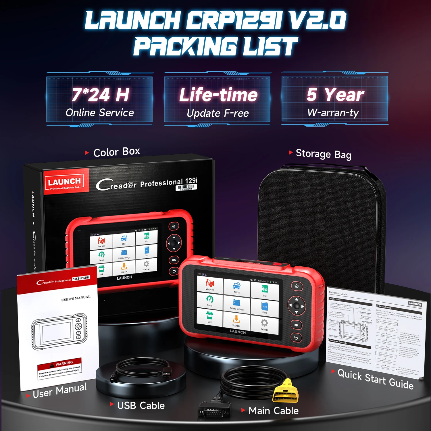 LAUNCH CRP129i V2.0 OBD2 Scanner 4 System Car Assessories Auto Engine Diagnostic Scan Tool DPF SAS TPMS 12 Service Reset Scanner